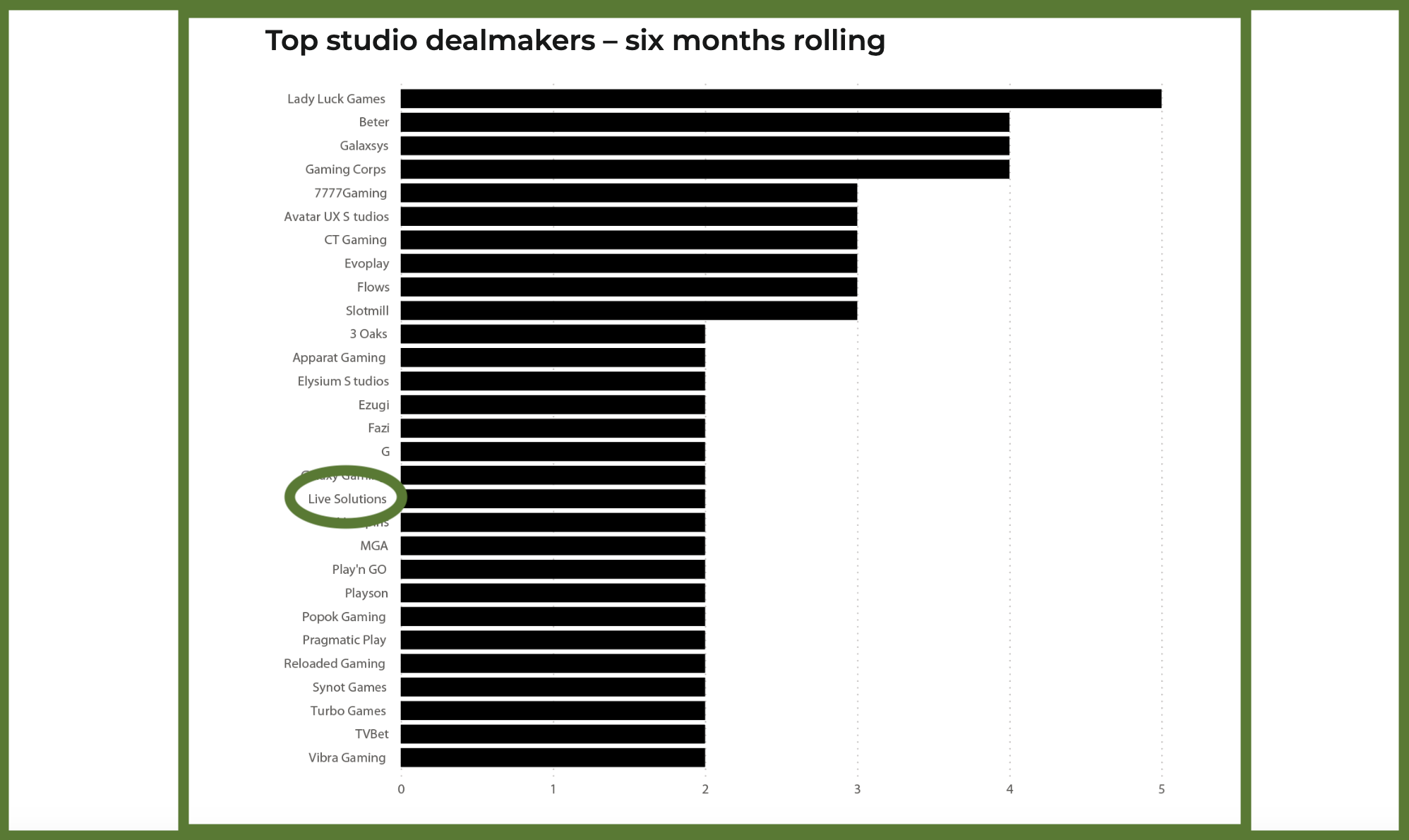 Meanwhile, Relax Gaming’s aggregator arm was plugging in yet more content, such as the Air Dice portfolio, meaning it now shares top spot as the busiest aggregator over the last six months
